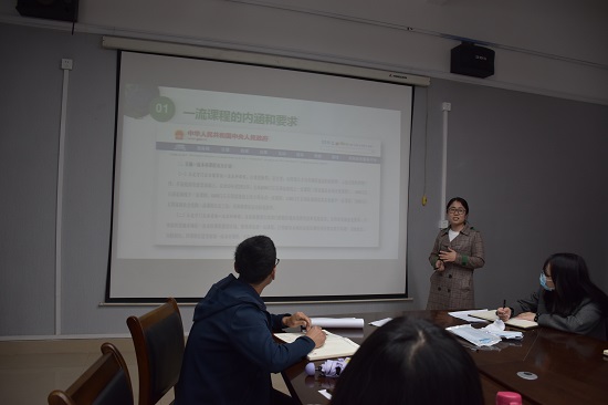 此次活动在学院领导的指导下教研科充分酝酿、认真组织、精心筹划,会议首先邀请了学院三位经验丰富的老师就专业建设相关课题展开了交流分享。尹宁宁老师以“一流课程建设分享”为主题,详细阐述了近年来国家级、省级、校级一流课程的申报情况及政策变化,并围绕当前学科建设重难点提出了自己的独到见解及具体建议。