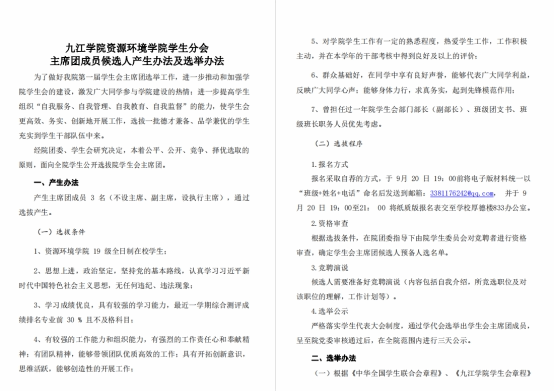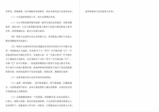 根据上级文件指示,对学生会工作进行规范和改革。严格落实“学生代表大会制度”,组织架构上对部门数量进行整合,对学院主席团和学生会人数及身份进行了严格规范及审查,对学生会工作进行“去中心化”和“去行政化”改革。