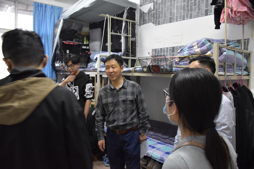 313日下午,beat365中文官方网站党委书记杨期勇、学生思政教育科及班主任老师深入学生宿舍23栋开展疫情防控督查及宿舍安全检查。