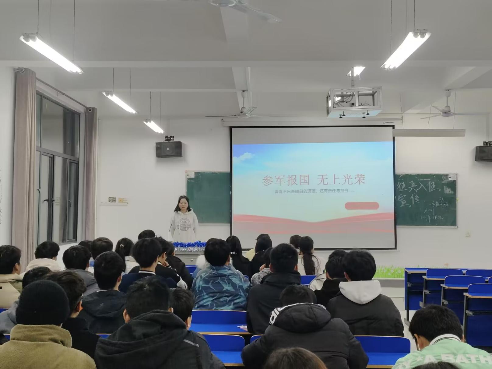 携笔从戎报国志,青春热血铸军魂。为了深入贯彻落实2023年全国大学生征兵工作会议精神,激发大学生参军报国的热情,2月26日,beat365中文官方网站组织各班开展“携笔从戎绽放青春”征兵宣传主题班会活动。