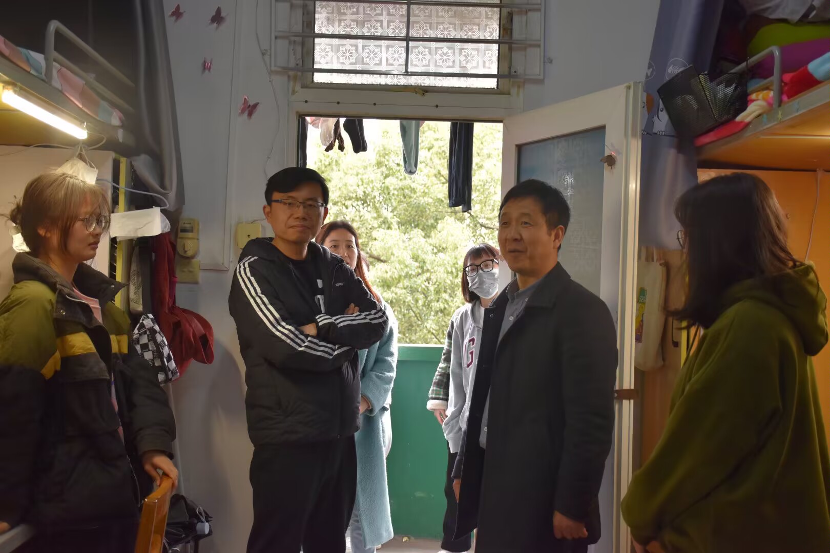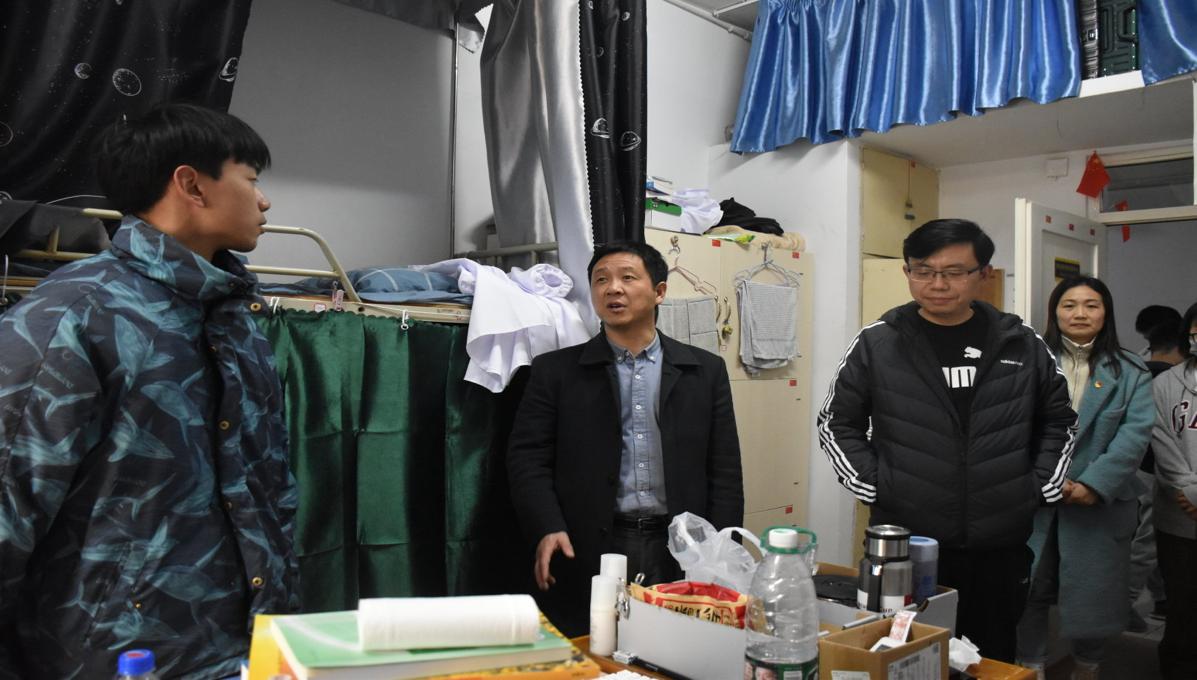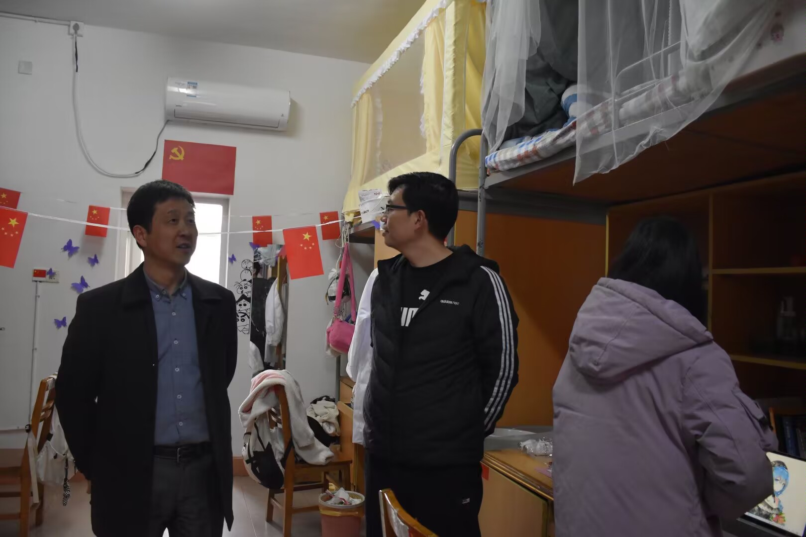 为进一步加强学生宿舍安全管理,深入了解学生思想、生活及学习情况,为新学期营造良好学习生活环境,3月1日下午,beat365中文官方网站党委书记杨期勇,党委副书记张杨帆,学生管理科科长龚双双,学生教育思政科科长肖国光一行对我院学生宿舍进行走访排查。