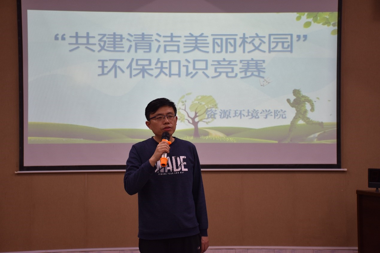 在主持人的宣布下,活动拉开序幕,资环学院党委副书记张杨帆上台致辞。张杨帆在致辞中表示,青年是祖国的未来、民族的希望,生态环境保护要从严抓起,让绿色发展理念在交流碰撞中深入人心,让生态之花在青春涌动中绚丽绽放,让绿色梦想代代相传,以绿色梦想铸就绿水青山,用绿色发展赢得金山银山。