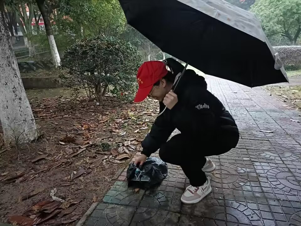 活动前期负责人把志愿者分为6组,在学校区域进行垃圾拾捡。活动过程中,可以在学校的各个地方看见志愿者的身影,他们不惧寒冷的天气,用自己的行动来诠释什么是奉献精神。