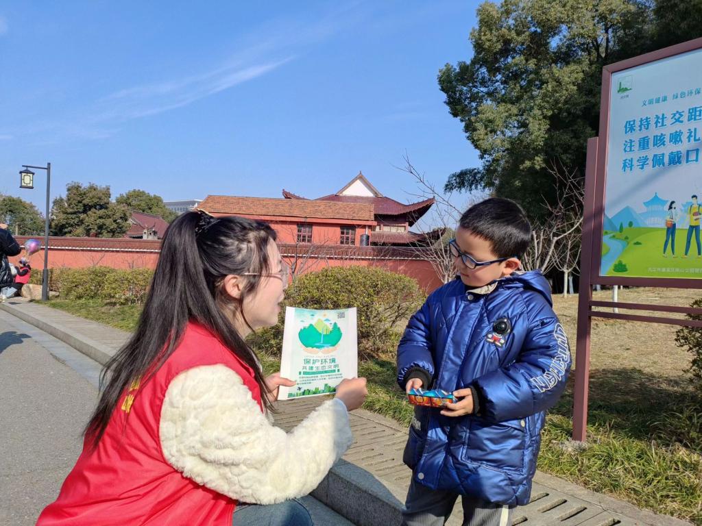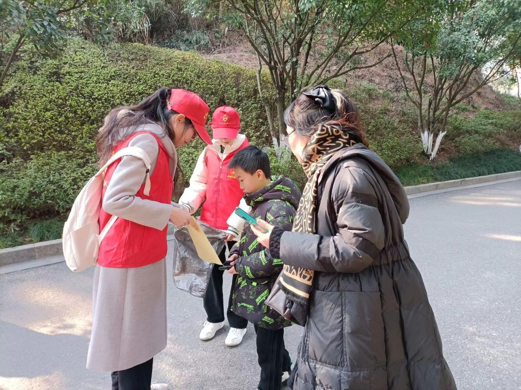 在南山公园内,我院学子积极投身到生态文明行为及意识宣传活动当中,对乱停乱放、乱扔乱倒行为进行劝阻,手拿环卫夹、垃圾袋、等工具,将垃圾进行清理,拾捡道路上的烟头、白色垃圾,清扫落叶等,并在此过程中对经过的路人进行环境保护美丽清洁的宣讲。身穿红色志愿服的他们,用实际行动践行着绿色理念,在这鸟语花香的公园里,筑起一道道靓丽的风景线。