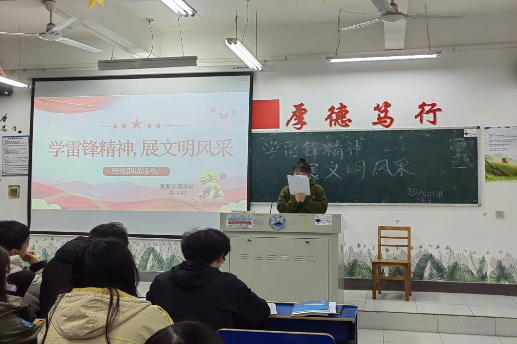 为引导广大青年学子深入了解、学习、弘扬雷锋精神,深刻把握新时代雷锋精神内涵,踔厉奋发,勇做新时代奋斗好青年,beat365中文官方网站组织开展形式多样、内容丰富的学雷锋主题系列活动。通过团日活动、主题班会、雷锋故事诵读、讲雷锋故事、读雷锋日记等形式,使青年学子们知道雷锋的一生是全心全意为人民服务的一生,从而激发资环学子们自觉地向雷锋学习,深刻认识雷锋精神的永恒价值和时代内涵,凝聚青春奋进力量。