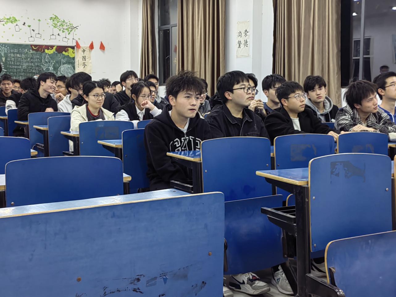 团日活动中同学们踊跃发言,积极参与讨论并表达对我国民族团结政策规划的高度认同,体现了我院学子对于民族文化的重视,展现出良好的精神风貌。