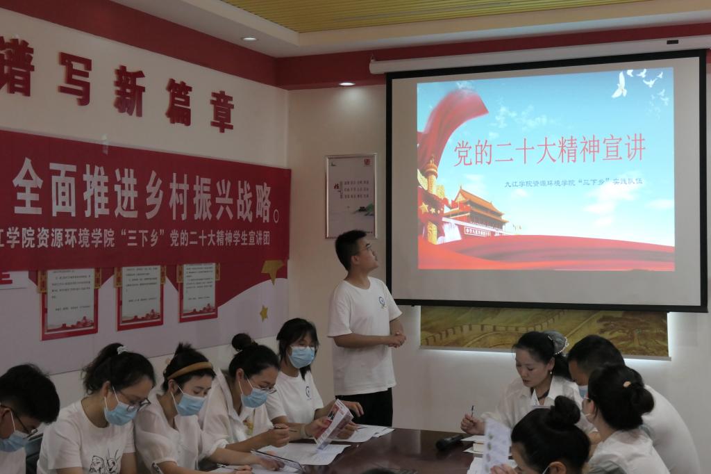 为推动党的最新理论在乡村生根发芽,落地见效,助力形成浓厚党的二十大精神学习氛围,beat365中文官方网站组建暑期“三下乡”党的二十大精神学生宣讲团在九江经济技术开发区永安乡长河村新时代文明实践站开展党的二十大精神宣讲活动。6月28-29日,学生宣讲团以走访入户、宣讲会、宣传手册等多种形式宣传党的二十大精神,让党的二十大精神深入乡村深入民心。