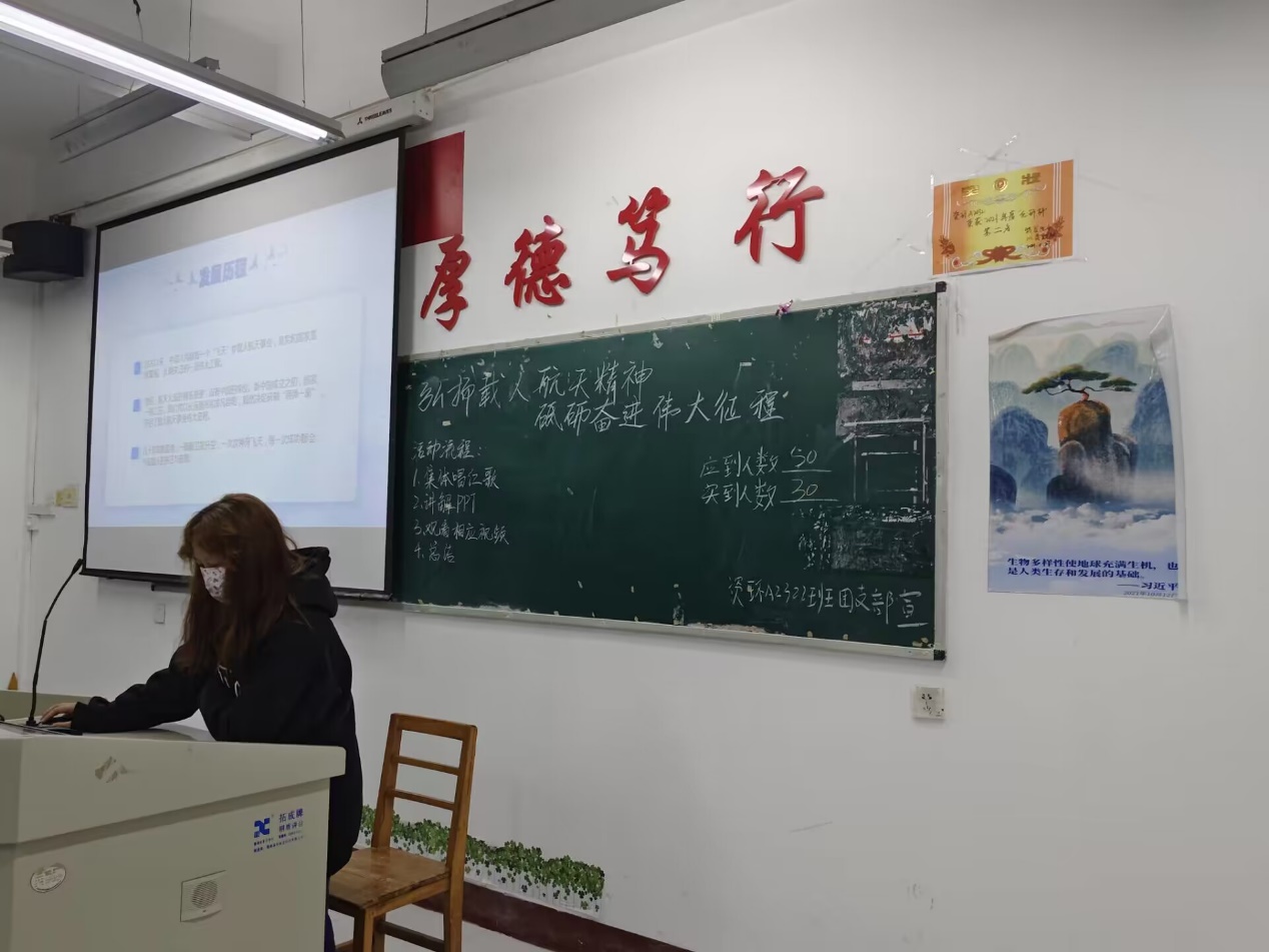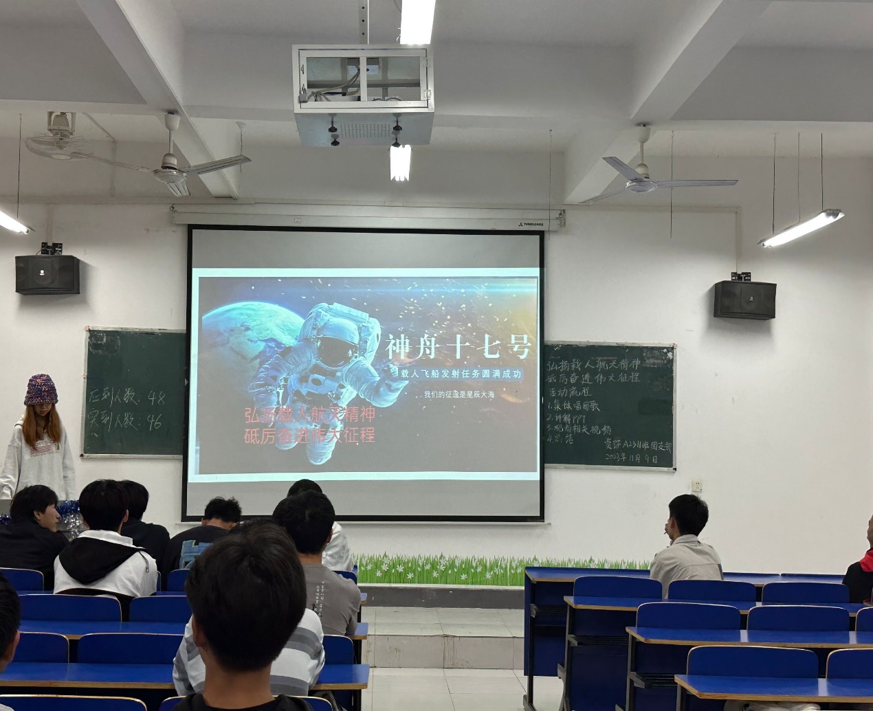 为了拓展同学们关于载人航天的知识,引领学生感悟载人航天精神,培养学生爱国主义情怀,增强学生的民族自信心和国家认同感,11月8日晚,beat365中文官方网站学院团委组织学院各团支部开展了以“弘扬载人航天精神,砥砺奋进伟大征程”为主题的团日活动。