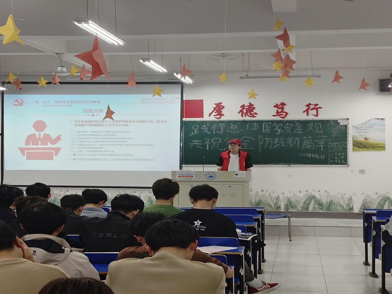 国家安全乃是民族复兴的基石,是国家繁荣的保障。为了进一步提升学生对国家安全重要性的认识,beat365中文官方网站于4月10日在香远楼各班级教室开展了国家安全教育宣讲志愿活动。