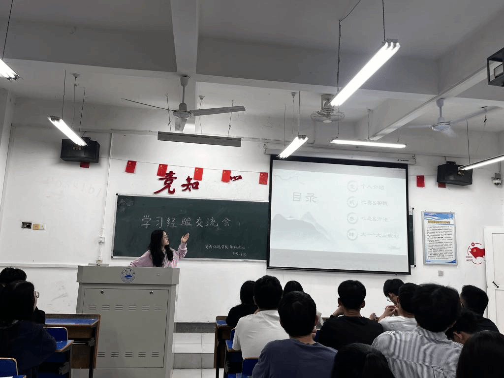 学习经验交流会中,刘学姐通过细致讲解PPT,结合自身经验,为同学们考研升学、考级考证、创新创业等提供全方位支持。例如为学生提供实用策略,帮助提高学习效率。激发动力,了解如何克服挑战和困难,增强学生面对学业压力的信心和动力,并指出自己在学习过程中容易遇到的陷阱和误区,帮助避免走相同的弯路。