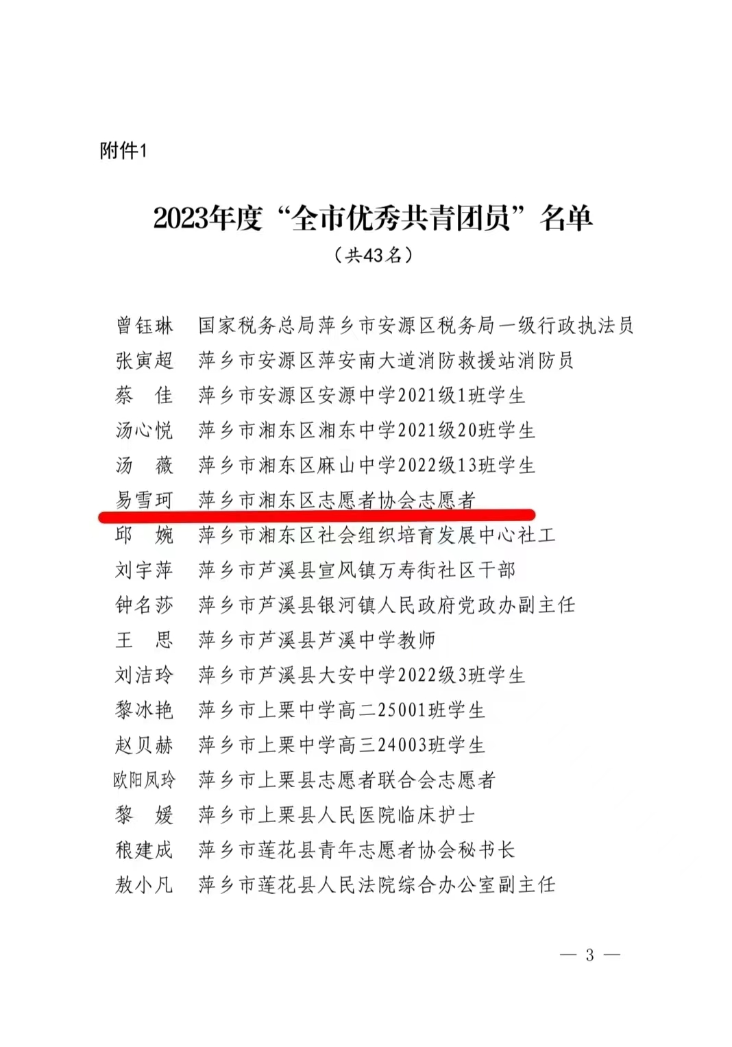 近日,从萍乡市湘东区志愿者协会传来喜报,beat365中文官方网站2021级学生易雪珂获2023年度“全市优秀共青团员”荣誉称号。这一荣誉不仅是对于易雪珂同学的个人努力和成长的肯定,更是对我院共青团工作的高度认可。
