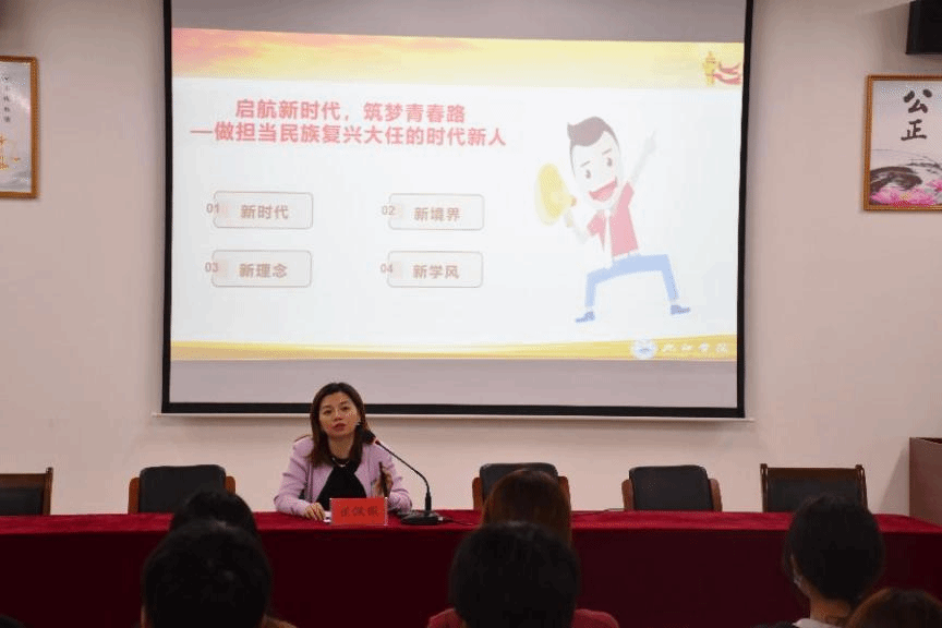 最后,由翟佩佩作指导讲话并专题授课,她指出,宣传思想文化工作十分重要,对进一步加强学院宣传队伍建设,提升宣传队伍整体素质与业务水平,培养学生宣传意识具有重要意义。翟书记对同学们提出以下三点希望与要求:一、持续学习,持续提升自我;二、勇于实践,敢于担当责任;三、加强协作,提升工作协力。展望未来,我们应该树立新时代、新境界、新理念、新学风,担复兴大任,做时代新人。