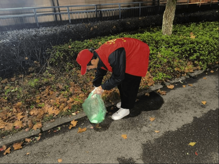 志愿者在校园里面行走,并携戴着手套和垃圾袋,认真仔细的清理着校园内垃圾,尽职尽责的为大家提供优美的校园环境,用实际行动为营造美好和舒适的校园环境贡献自己的一份力量!
