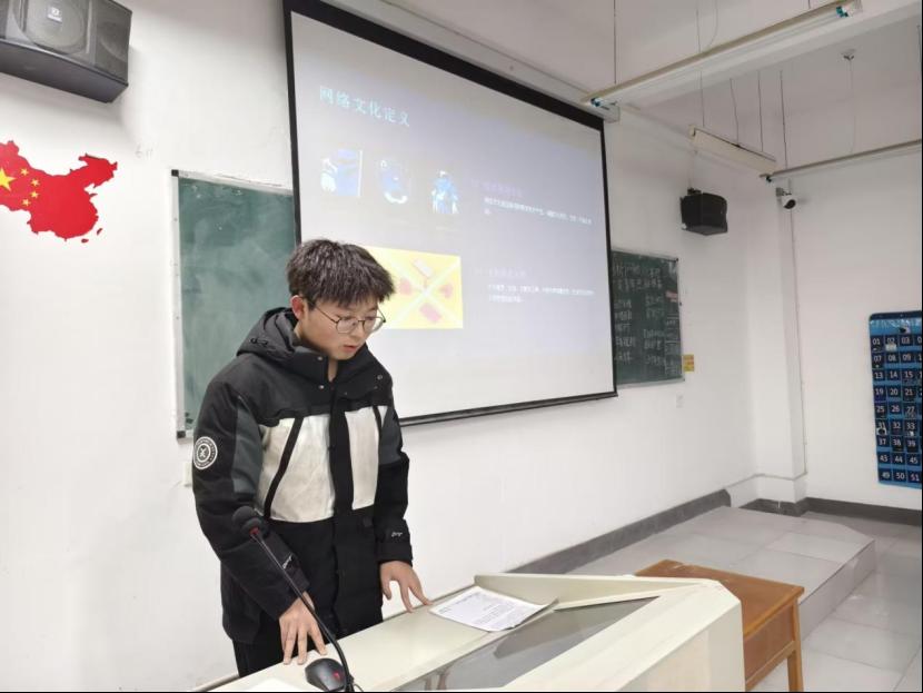 在齐唱团歌结束过后,团日活动准时开始。各班团支书和组织委员组织各班开展“剖析网络文化机理,夯实青年思辨根基”团日活动,主讲人围绕网络信息质量参差以及其价值导向引导青年学生们深入探索网络文化,让青年学生直观感受网络如何打破文化壁垒,拓宽文化视野,领略多元文化魅力。