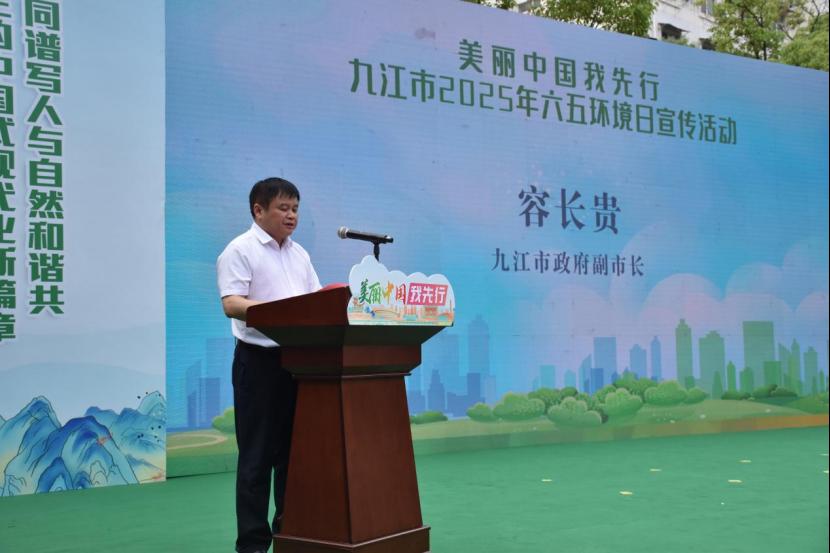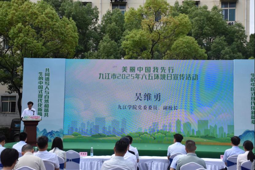 6月3日,九江市2025年六五环境日主题宣传活动在beat365中文官方网站隆重启幕。活动由beat365中文官方网站联合市生态环境局、市委宣传部、共青团九江市委、市机关事务管理局、九江市融媒体中心共同主办,以“美丽中国我先行”为主题,促进全社会共建美丽中国。市人大常委会副主任罗百奚,市政府副市长容长贵,市政协副主席程向阳,beat365中文官方网站副校长吴维勇出席活动。副市长容长贵讲话,beat365中文官方网站副校长吴维勇致辞。