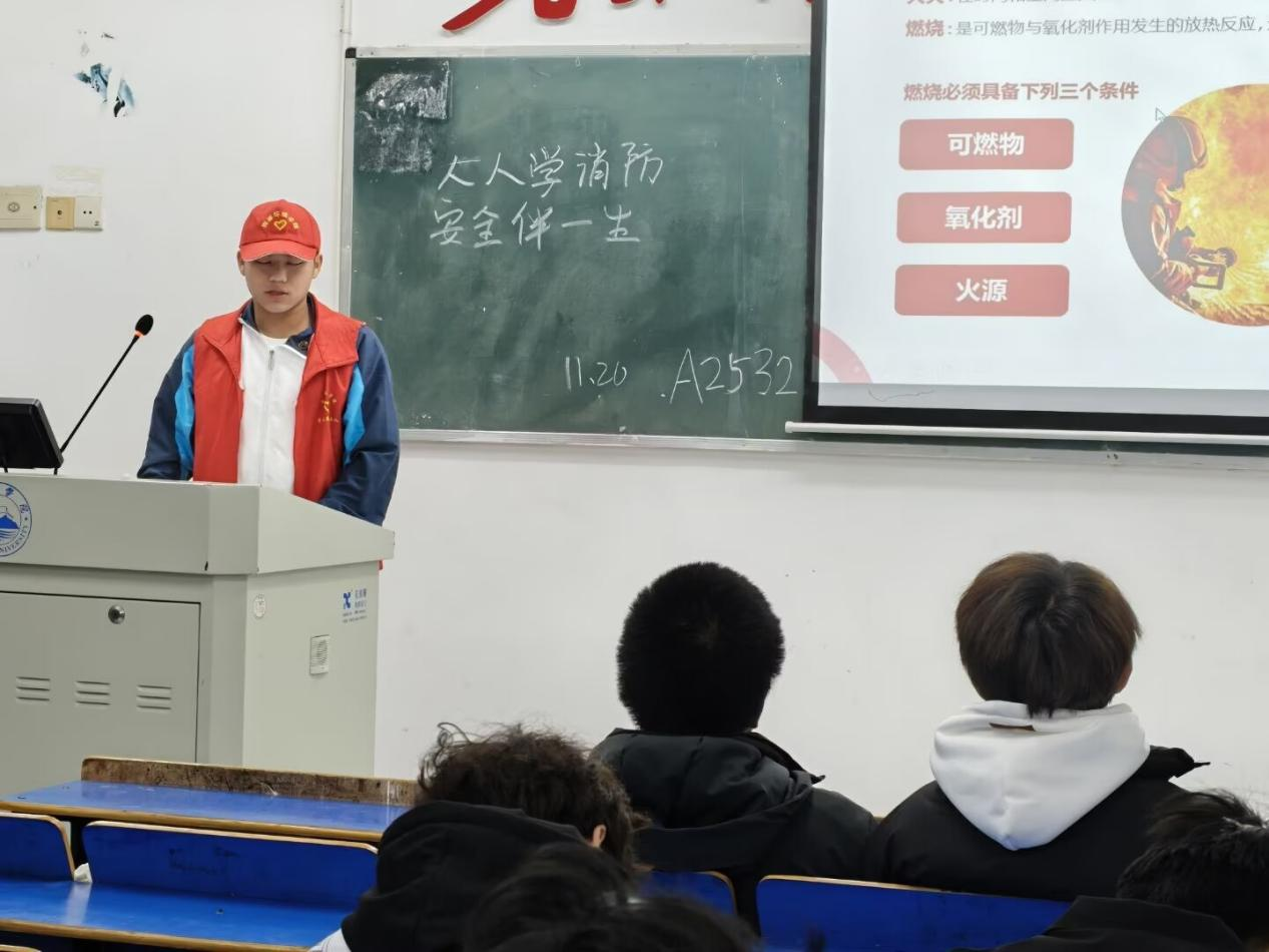 讲座现场,志愿者做了充分准备和细致安排。主讲人结合高校典型火灾案例,以图文、视频等形式讲解了宿舍安全用电、火灾隐患排查、初期火灾扑救等知识,还重点介绍了火场逃生的基本原则和自救技巧,讲解内容丰富生动,新生认真参与,现场学习氛围浓厚。