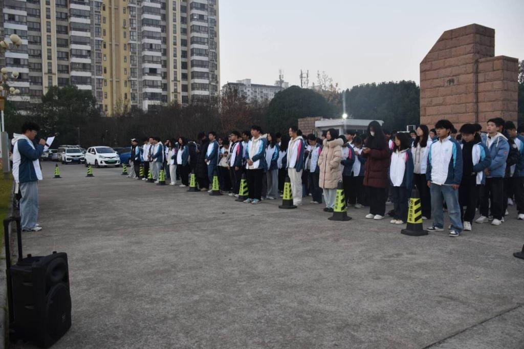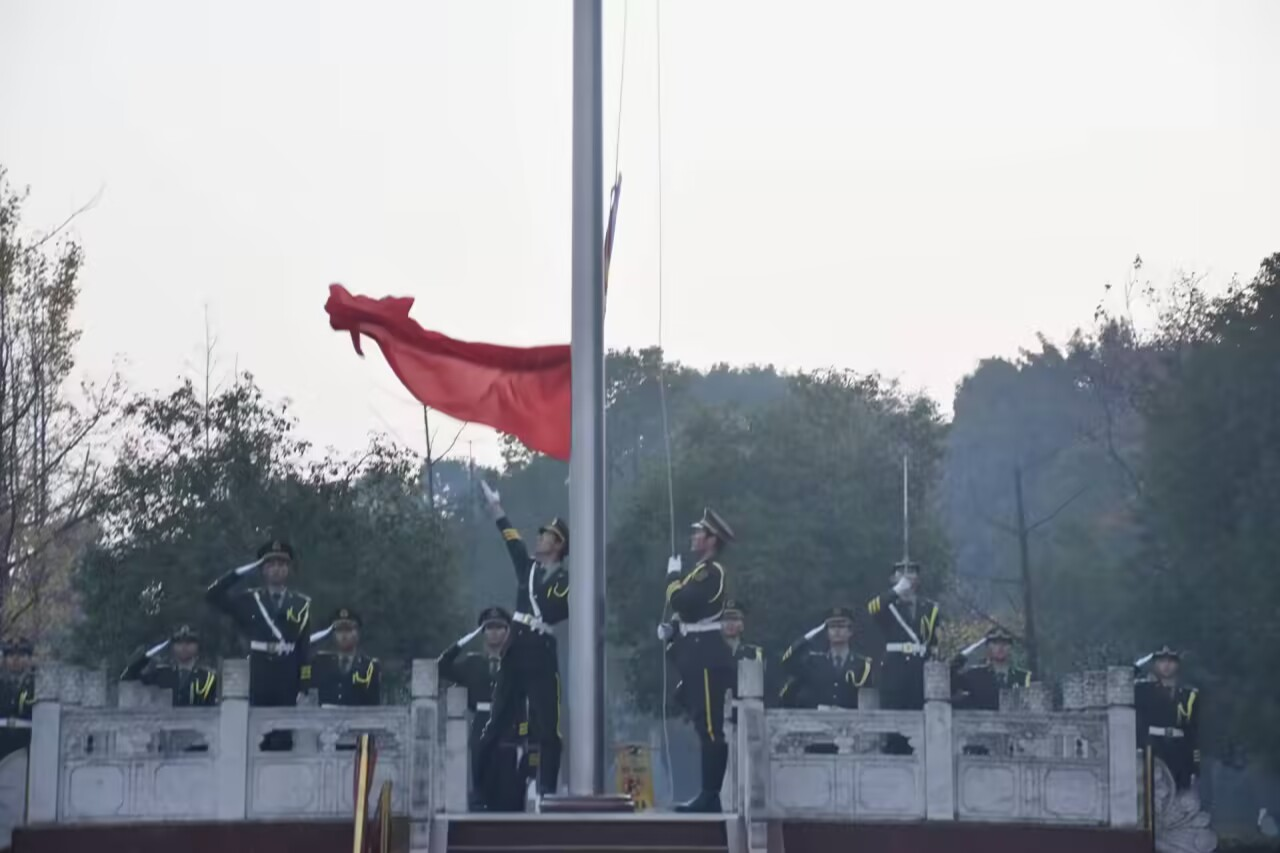 六时四十分,参加升旗仪式的同学们在升旗台前整齐列队,仪式正式开始。国旗班队员们身姿挺拔俊逸,步伐铿锵有力,护送国旗入场。“升国旗,奏唱国歌!”随着一声号令,升旗手郑重而有力地将国旗抛向天空。伴随着《义勇军进行曲》雄壮的旋律,五星红旗在晨曦中缓缓升起,全场肃然静立,深情仰望国旗,爱国情怀在每位同学心中升腾。