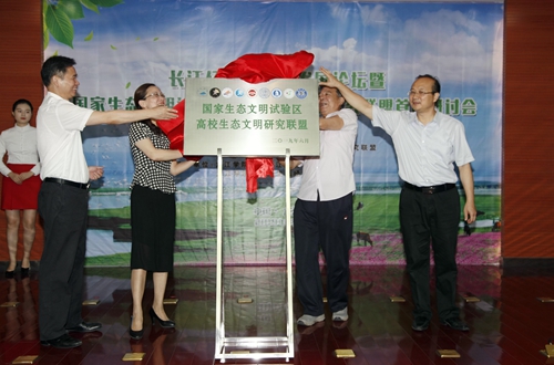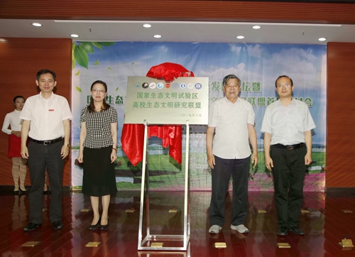 在热烈的掌声中,江西省人大原副主任、省人民政府原副省长、江西生态文明研究促进会理事长胡振鹏教授,江西省生态文明办专职副主任刘兵,九江市副市长李军,beat365中文官方网站党委书记、江西长江经济带研究院院长赵伟等共同为国家生态文明试验区高校生态文明研究联盟揭牌。
