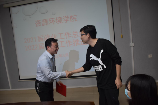 会上,党委副书记张杨帆通报了2021届毕业生就业及考研录取情况,为2021年度就业工作先进个人颁发了荣誉证书;就业工作负责人肖国光通报了我院2022届毕业生目前就业及考研拟录取状况。