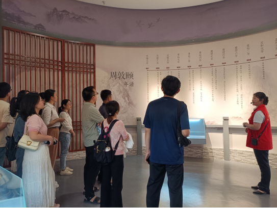 在纪念馆讲解员的解说下,老师先后参观了周敦颐纪念馆、爱莲塘、牌楼、纪念亭等,重读了周敦颐《通书》、《太极图说》等代表作,以及《爱莲说》、《拙赋》等经典诗篇。周敦颐纪念馆处处体现了周敦颐清正廉洁、不与世俗同流合污的高洁品性,老师们对周敦颐寓廉于莲的廉政思想有了深刻的理解,对周敦颐为官廉政之道也有了深刻的感悟。