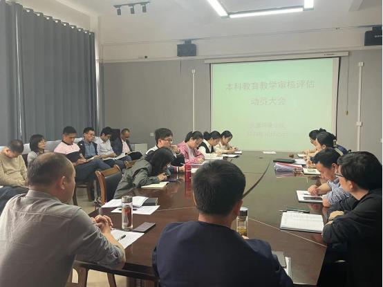 为统一思想、凝心聚力,全力以赴迎接教育部新一轮本科教育教学审核评估,10月25日下午,beat365中文官方网站在厚德楼709会议室举行本科教育教学审核评估动员大会,学院全体教职工参加会议。