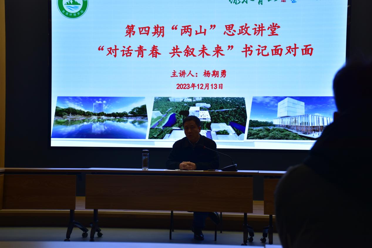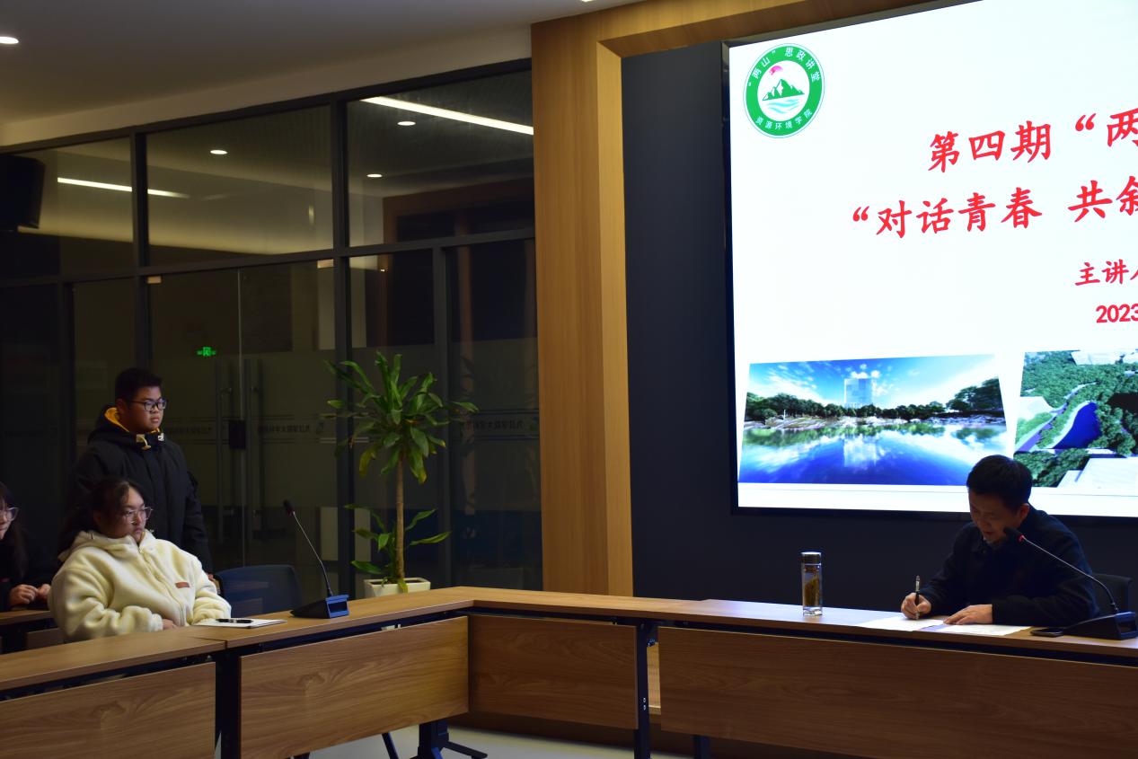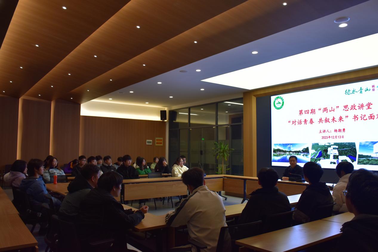 第四期“两山”思政讲堂——书记面对面活动的举办,加深了学院与学生之间的沟通和了解,为青年学生的成长和发展提供了支持和帮助。学院上下齐心、协调联动,把问题化解在基层,把服务做深做实做细,形成全院一盘棋、师生一条心的发展合力。开设“两山”思政讲堂是我院切实贯彻落实习近平生态文明思想和党的二十大精神的具体举措,是打造党建品牌和学生思政工作品牌的重要抓手,“两山”思政讲堂系列活动将继续发挥其重要作用,积极培养资环学子争做“两山”理念的宣传者和实践者。