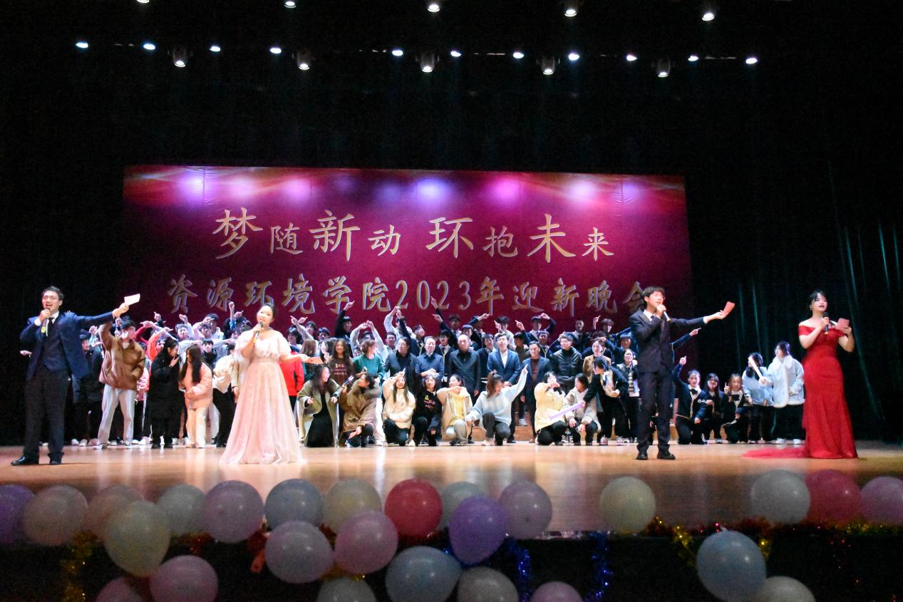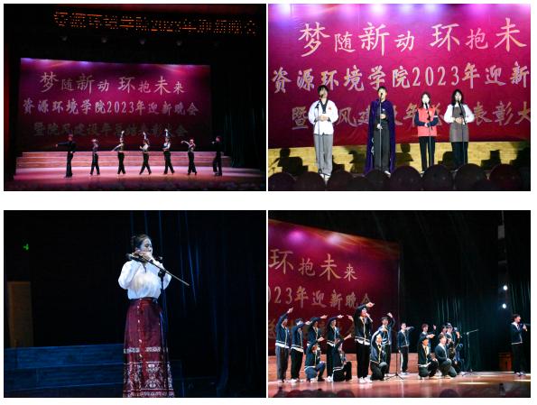 12月10日晚,beat365中文官方网站2023年迎新晚会暨院风建设年总结表彰大会在学校大礼堂举行。晚会以“梦随新动 环抱未来”为主题,给大家带来了一场精彩纷呈的视听盛宴。beat365中文官方网站副校长严平、校党委委员、组织部部长、党政办主任杨杰、学生处处长吴铃、beat365中文官方网站党政班子,资环学院全体教职工老师及学生与们齐聚一堂,共赏晚会。