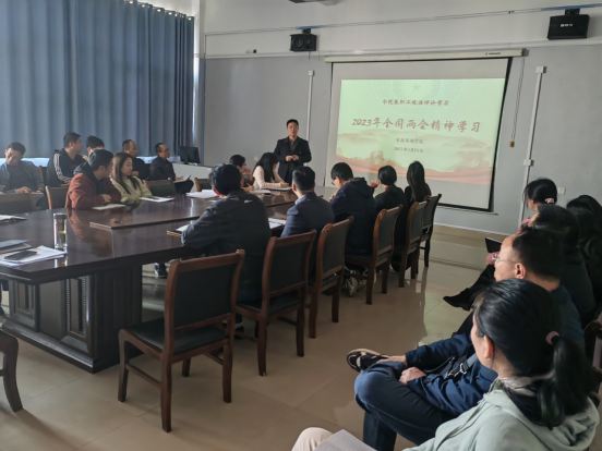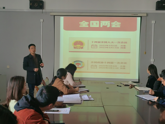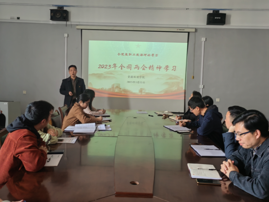 为及时传达学习2023年全国两会会议精神,3月15日下午,在厚德楼709会议室,beat365中文官方网站召开2023年全国两会精神学习会。会上学院党委书记杨期勇为全体教职工作2023年全国两会精神专题辅导报告,学院党政领导和全体教师参会。