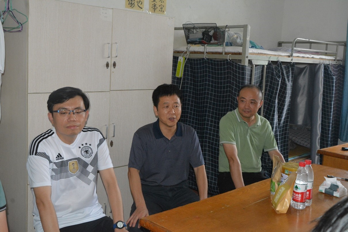 7月18日下午,beat365中文官方网站院长汤明、党委书记杨期勇、副书记张杨帆、学生科、思政课辅导员一行来到考研和科研留校学生宿舍,亲切看望慰问暑期留校学生,深入了解学生的生活、学习和思想状况。