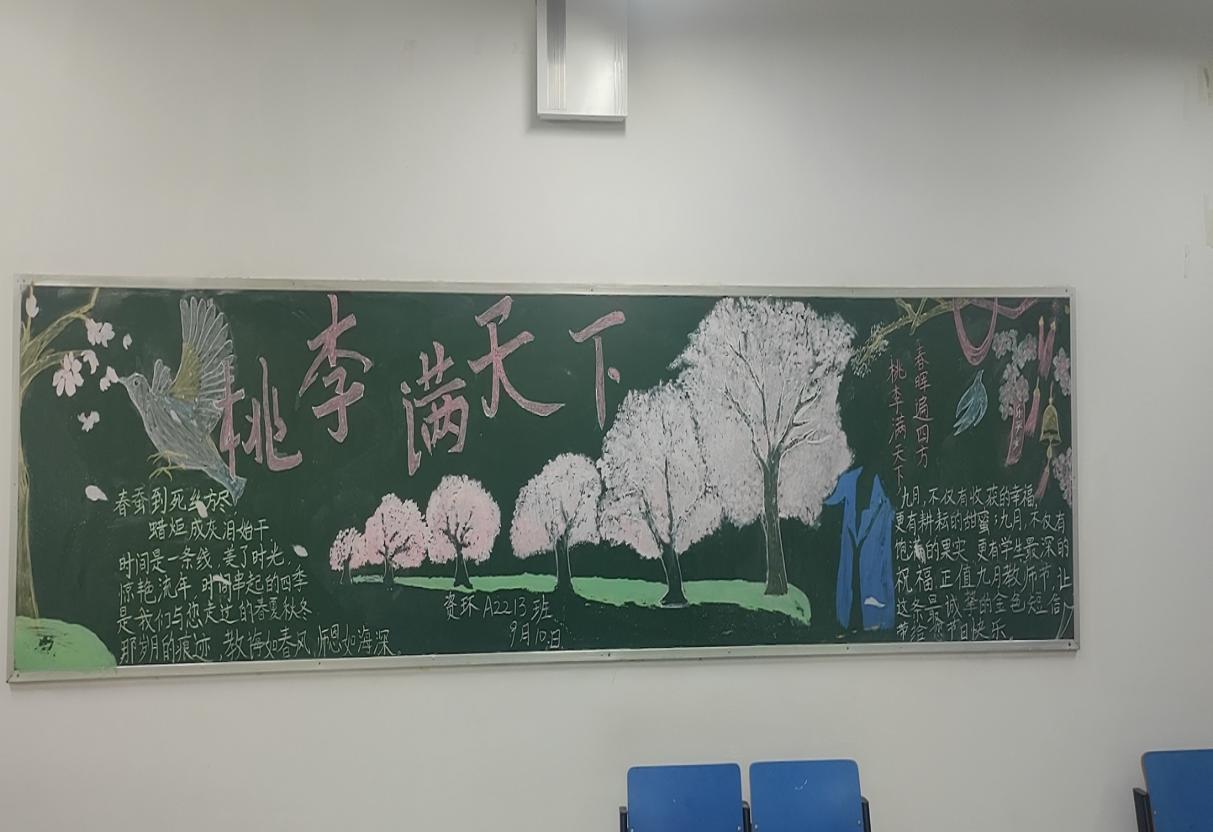 同时,各班用黑板报的方式感恩祝福老师,用心描绘,用情抒发。一幅幅主题鲜明的黑板报饱含着资环学子对教师们的感恩与敬佩,用深情厚意的话语,为节日里的老师献上了最真挚的祝福。